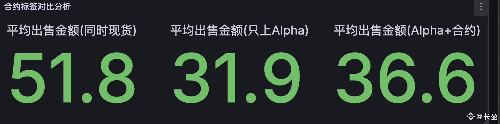现货、合约标签对比。同天上现货的收益还是多一些,但是一个月才2个, 上alpha和合约的,比只有alpha的多一点点