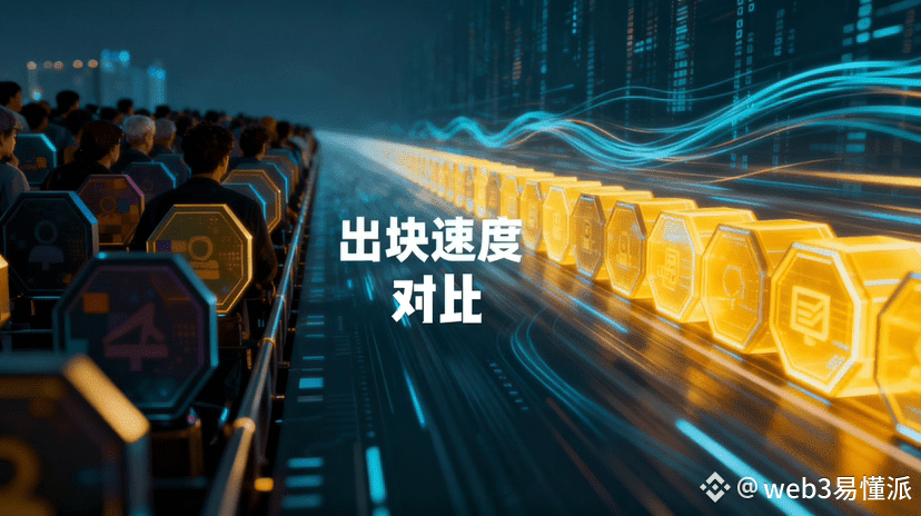 •出块速度决定交易等待时间:慢链排队久,快链几秒完成