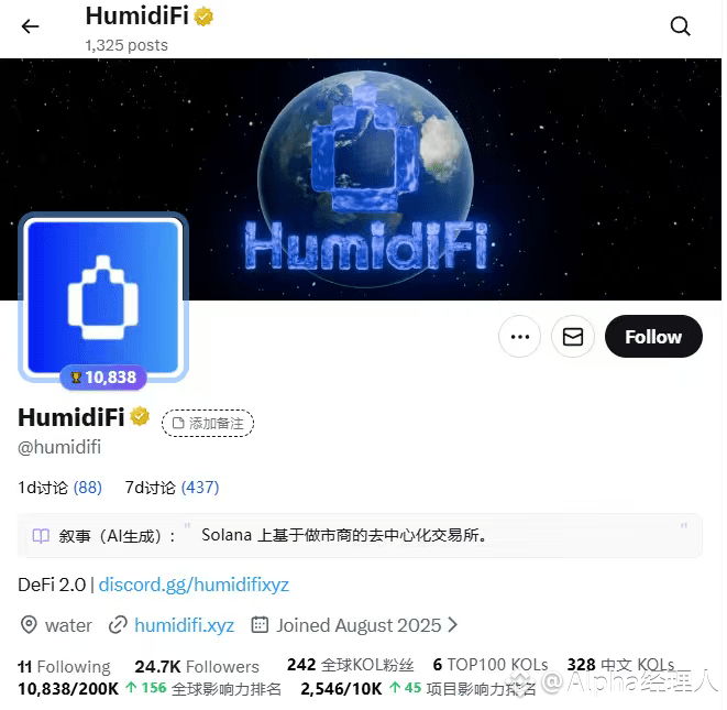HumidiFi 是一个构建在 Solana 生态上的 AMM DEX,主打高效率与链上流动性。