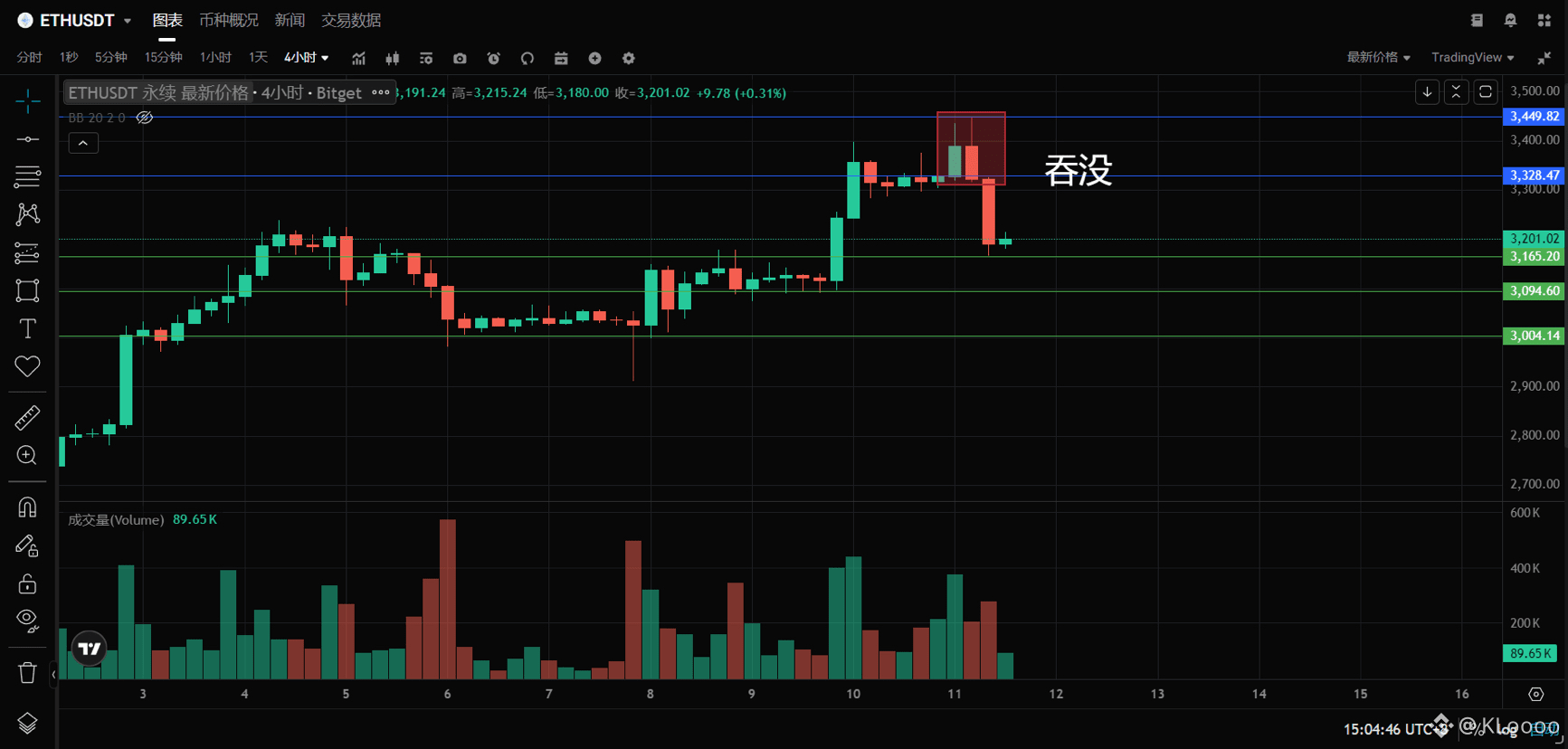 以太今日上方阻力看3320 3450附近