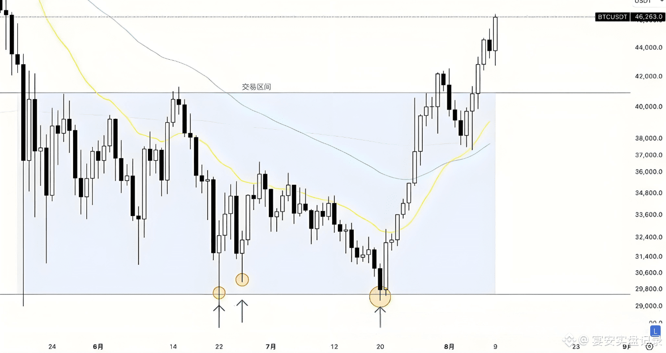 技术。因为他们无法识别这是一个做多形态,不懂技术分析,不懂在区间底部的假突破就是一个做多的入场形态。大多数弱势交易者的技术分析能力很差,比如当初 Steven 在这两个时间点也录制了视频,希望大家一起参与,告诉大家做多的时间到了,结果很多评论都在骂,说熊市都来了还在让人买入,结果这些人都踏空了。