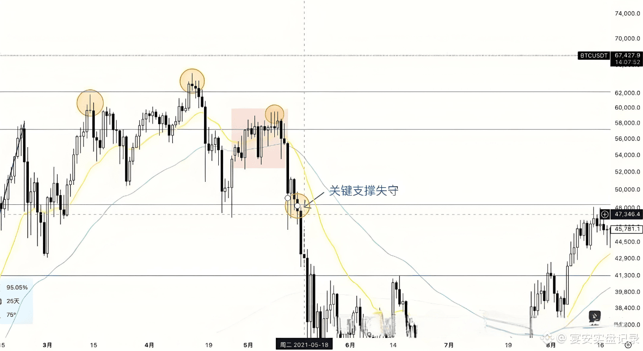 为何没有跟进的力量?因为多头主力早在较低的位置,比如 2 万或 2 万以下,甚至 3 万时就已经入场了。此时,他们开始获利平仓,不再在突破后买入,而是开始卖出手中的多单和现货。