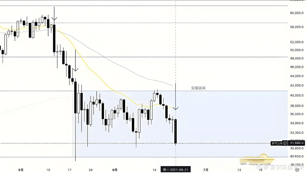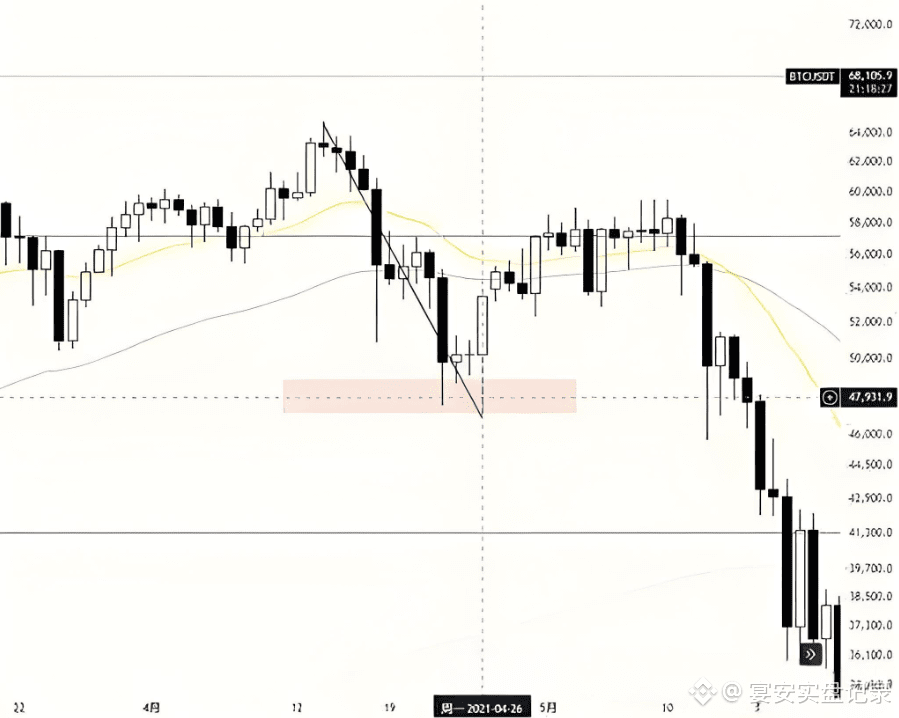 从 2 万介入市场到 4 万,已经实现了翻倍的收益。对于更早进入市场的主力来说,他们的盈利更加丰厚,因此他们开始逐步平仓,只愿意在更深的回调中再次买入。在这段急速上涨中,他们之前在任何回调中都积极买入,而现在他们只愿意在更深的回调中入场。(低买高卖,只想捡更便宜的筹码)