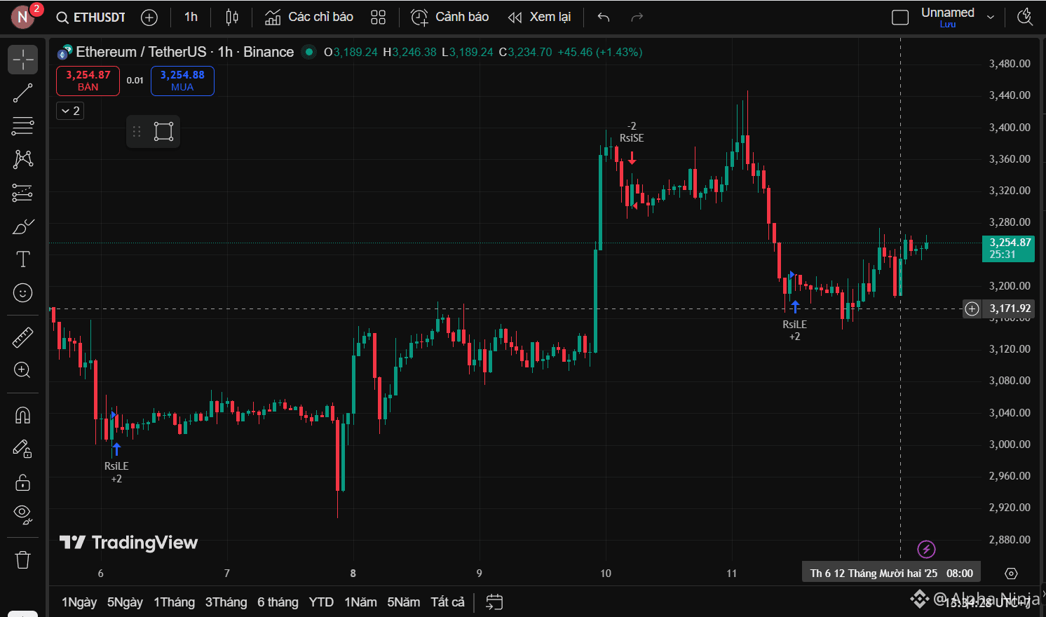 ETH hiện đang giao dịch dưới vùng phân phối hình thành sau đỉnh. Nhịp hồi vừa qua không phá được cấu trúc giảm ngắn hạn. RSI hồi nhưng đứng thấp hơn pha trước, xác nhận động lượng suy yếu. Các cây nến xanh xuất hiện xen kẽ nến đỏ, thân ngắn, cho thấy lực mua không đủ mạnh để chiếm ưu thế. Trong bối cảnh đó, việc kỳ vọng ETH quay lại xu hướng tăng ngay là quá sớm. Đây là vùng mà phe bán thường tận dụng để mở lại vị thế. Short ở đây là đi theo cấu trúc, không phải đánh cược.