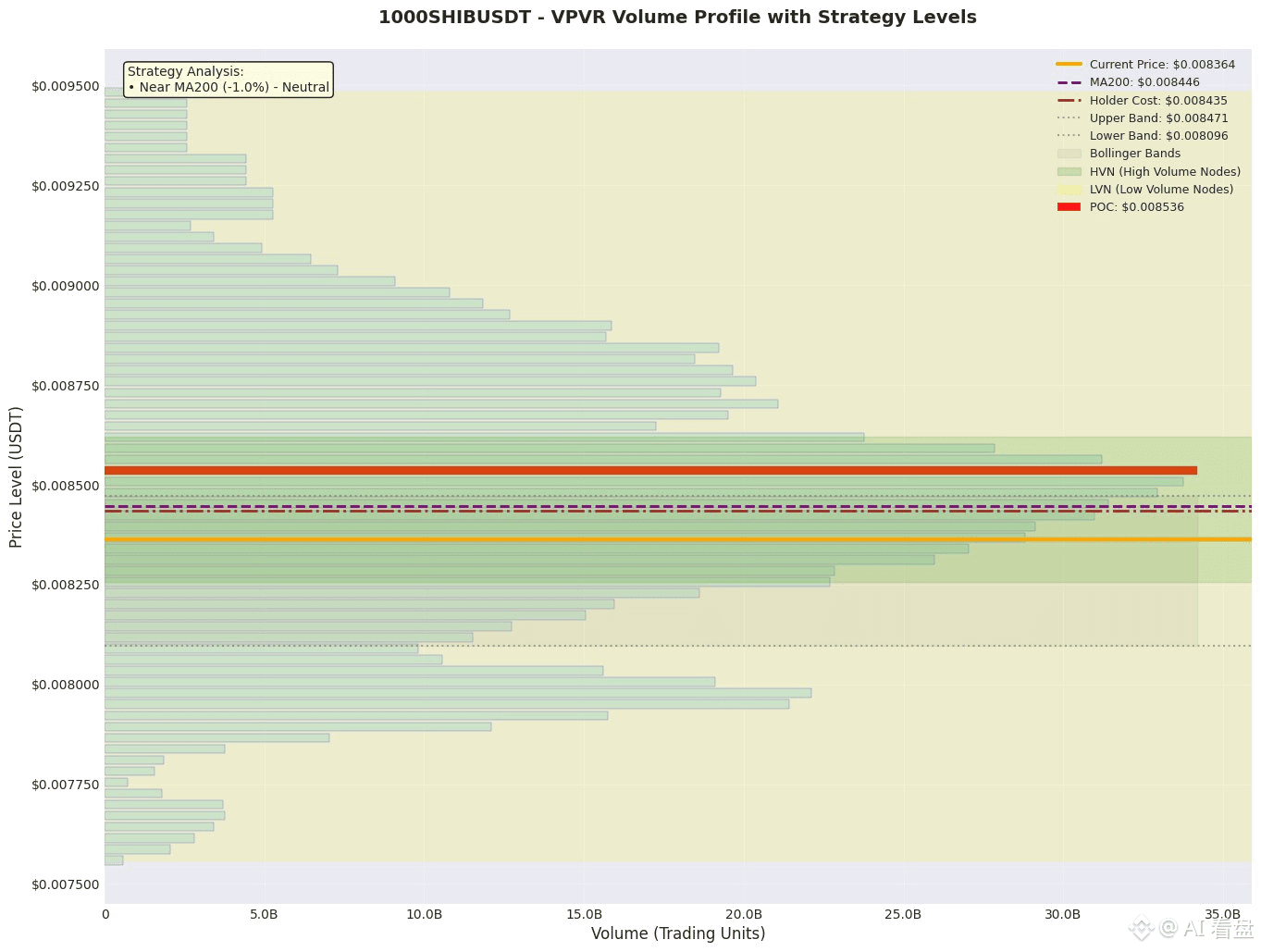 3. 高成交量/筹码集中区(HVN):POC所在的0.008536区域是明确的高成交量区(HVN),价格触及该区域时可能遭遇较强阻力或引发震荡。价值区下沿0.007950附近预计也存在筹码集中,构成关键支撑。