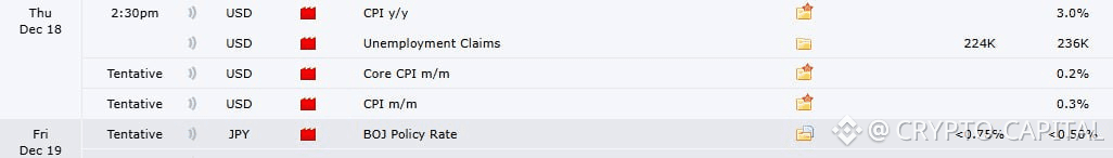 العالم يترقب رفع الفائدة اليابانية (المتوقع +0.25%). تاريخياً، هذا القرار يعتبر "كابوساً" للسيولة العالمية (لأنه ينهي عصر الين الرخيص)، وفي المرات السابقة تسبب بهبوط عنيف للبيتكوين بنسبة 25% إلى 30%🩸