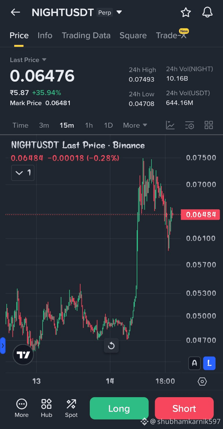 NIGHT has experienced a strong +35.94% rally with massive volume (10.16B NIGHT, $644.16M USDT).