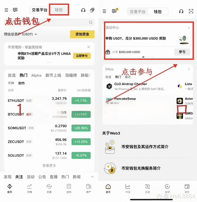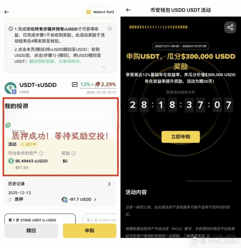 打开币安 App,搜索框敲「USDD」,活动入口一般在首页 Banner 或者「赚币」专区,点进去就能看到质押活动。