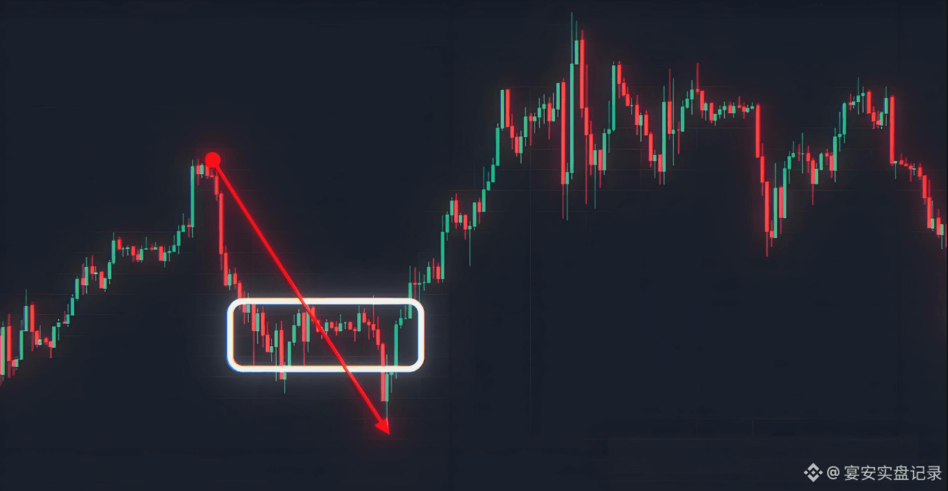 比如我们来看这个案例,我们现在假设这一坨是这段小下跌的末端旗形,当价格突破了这个末端旗形之后,马上又回到这个交易区间的价格范围内,那么接下来不是反转就是震荡。