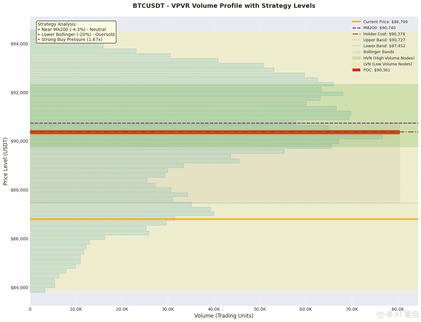 2. 趋势逆转风险:价格仍处于MA200下方,整体空头趋势未改,任何反弹都可能仅是技术性修正,若无法收复关键阻力(如POC 90360),趋势可能延续。
