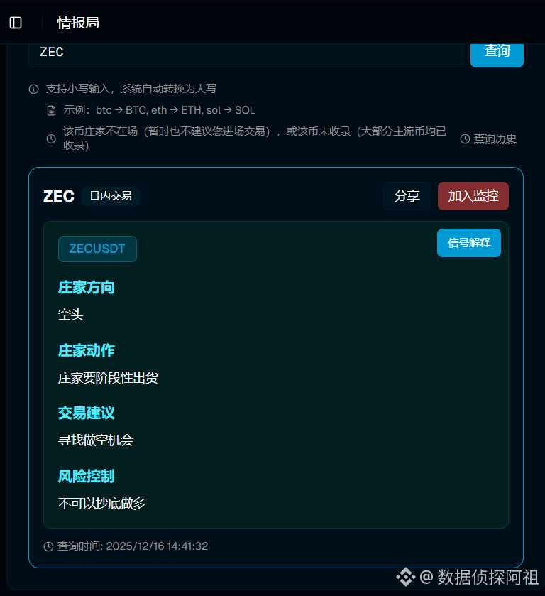 ZEC短期偏空,情报局+作战室在手,冷静等真机会最稳!