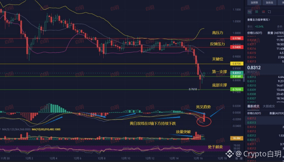 我的看法可能有点直接:短期行情,毫无疑问是空头占优。 巨鲸的动作和技术图形共振,指向很可能还有一跌,去测试更低的支撑。对于ASTER来说,当前的价格已经进入一个“高弹性区间”,波动会非常大。任何利好或市场情绪回暖,都可能引发报复性反弹。