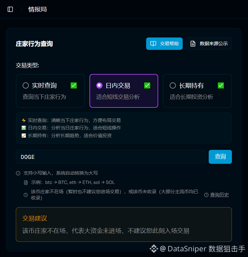 这个工具最牛的地方就是能一眼看出“庄家到底在不在”,DOGE现在就是没人带飞,先歇着最安全。