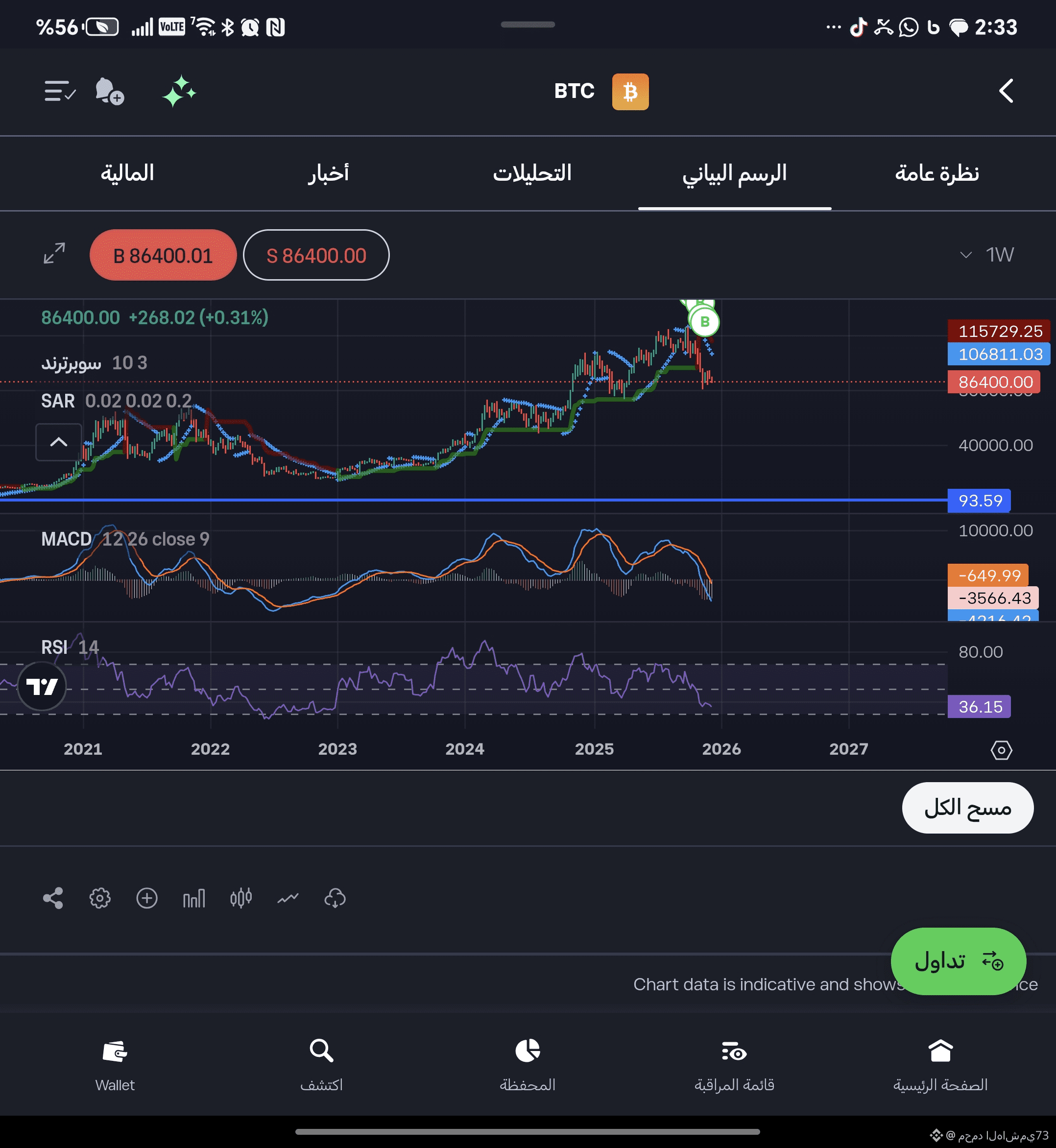 السعر وقت التحليل: 86,400 دولار