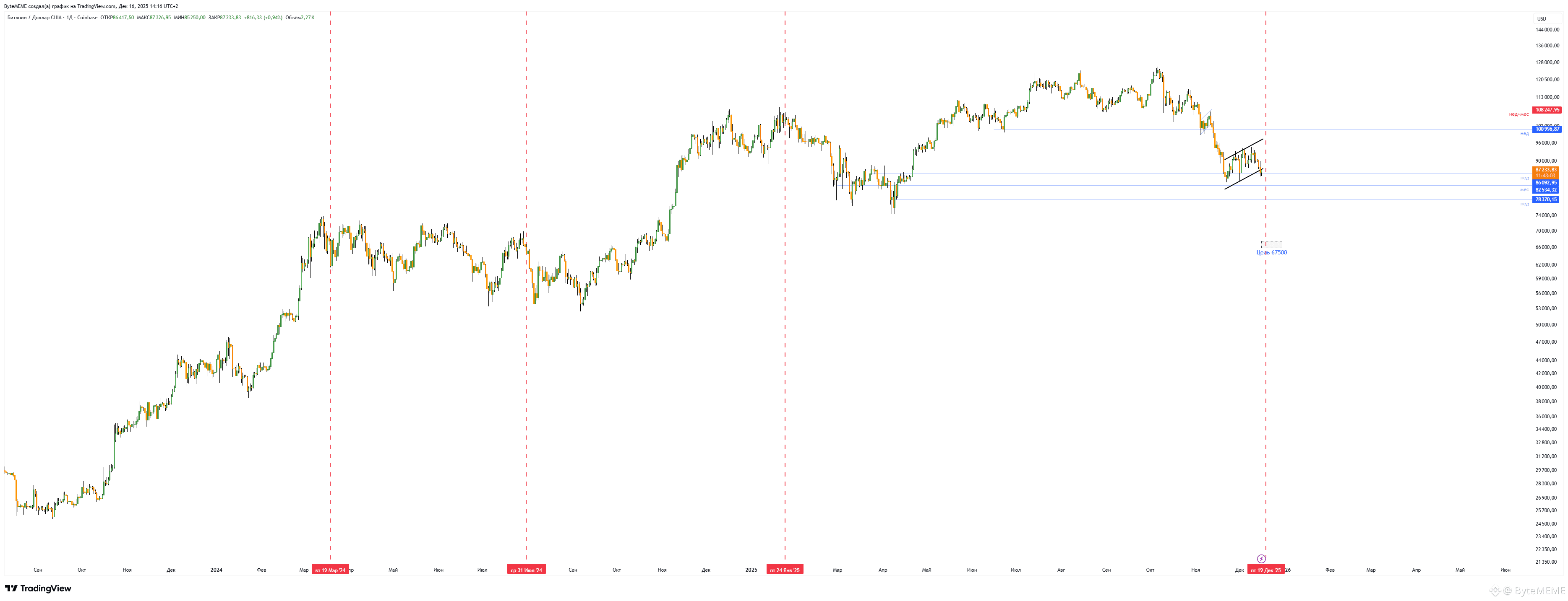 Теперь, когда появилось немного свободного времени, я хочу рассказать вам об одной из причин, почему я жду очередную волну снижения биткоина в период с 18 по 22 декабря 2025 года.