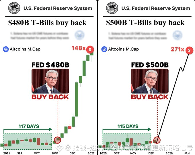 背景:美联储刚刚在12月1日结束了QT(量化紧缩),停止资产负债表缩减。现在转为主动购买T-Bills,来注入流动性。