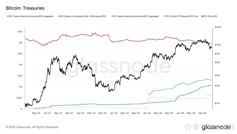 这一显著增长反映了比特币正在转变为战略性资产负债表资产,而非仅仅作为投机交易工具。此外,长期持有者的供应量持续维持高位,同时现货ETF产品也引入了更为稳定、由机构主导的资金流入。