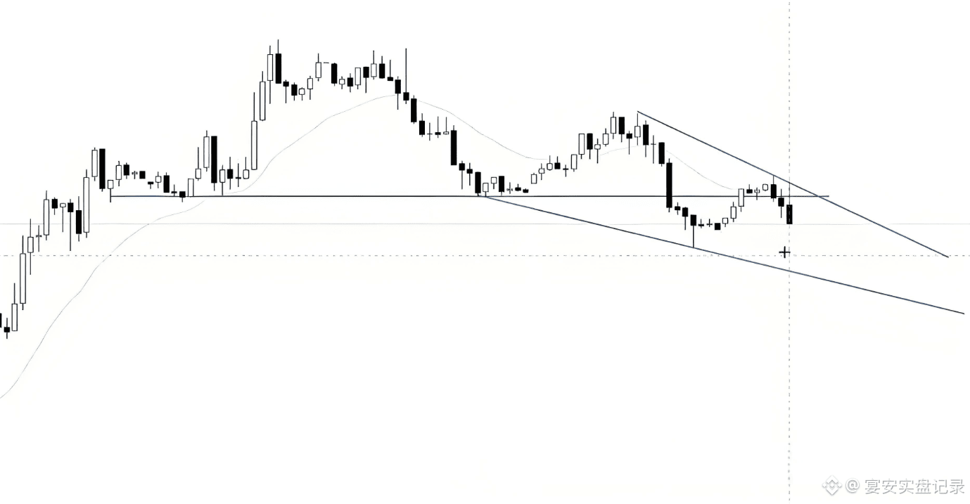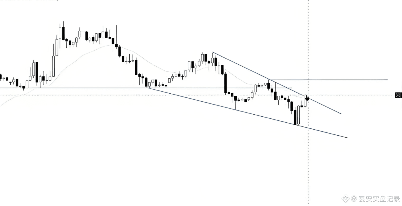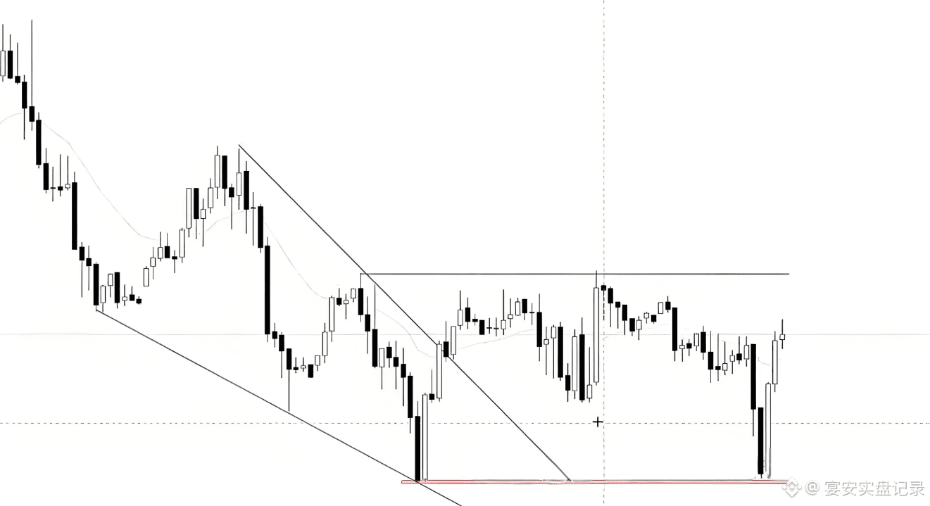从当前的市场走势来看,价格经历了波段水平位的测试,并且没有跌破前面的波段低点,这说明这次回测成功了。我们可以将这一形态理解为一个潜在的交易区间,而非单纯的楔形。