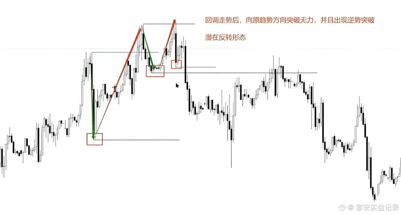 3.潜在反转:价格在突破无力后再次回调,后续突破依然无力,最终出现了逆势突破,这表明可能是潜在的反转形态。