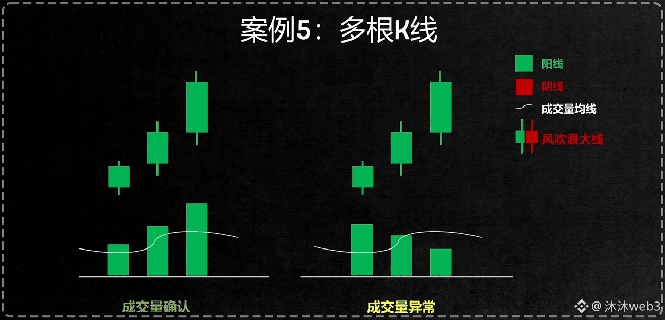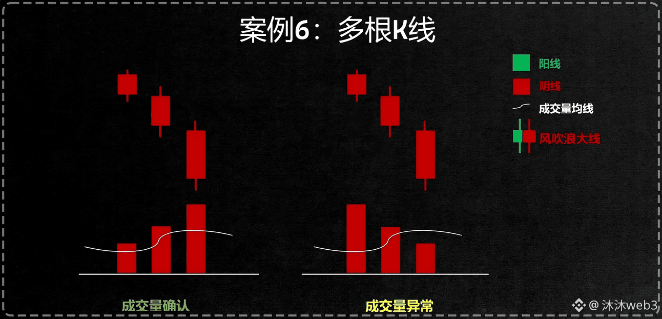编号6:成交量增多,但价格涨幅小,量价异常,说明多头力量努力了,但没大幅抬高价格,空头力量回归,再加上这里处在阻力位,价格大概率降低。
