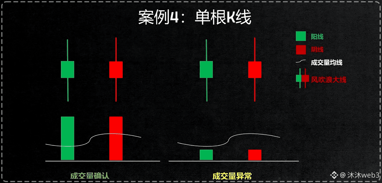 编号4:成交量减少,但价格涨幅增大,量价异常,说明卖方力量减弱,买方轻轻一用力就能抬高价格;