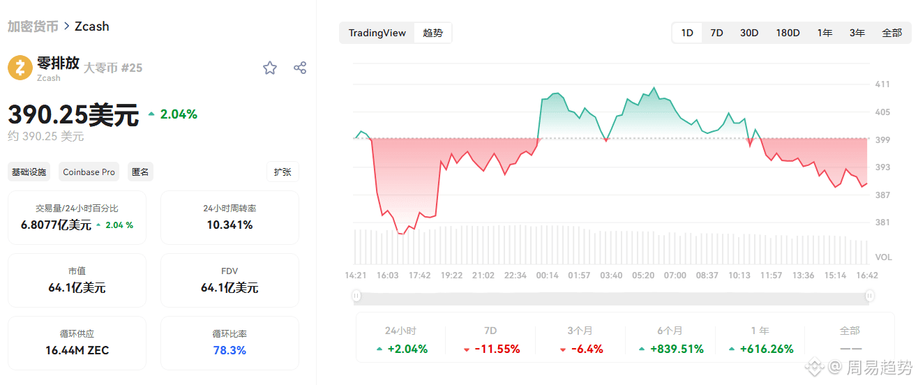ZEC 这走势看得我手心冒汗!现在价格卡在 390 美元附近,往下是支撑,往上是压力,今天到底是“触底反弹”还是“继续探底”?别急,周易带你一层层拆!