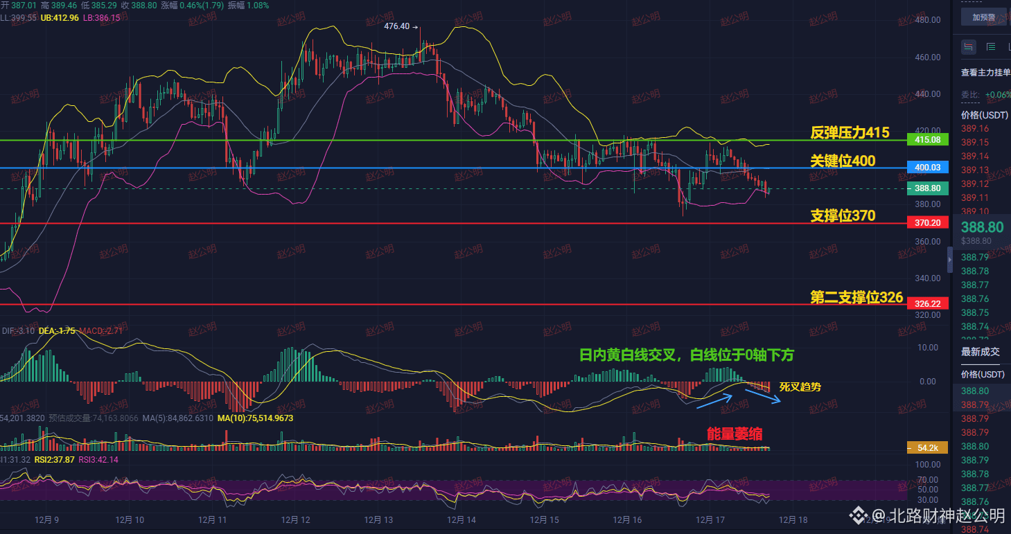 关键位置:400是强压,389是当前门槛,连400都摸不到,说明多头弱得可怜。下方370是纸糊的支撑,一旦跌破,326大概率守不住。