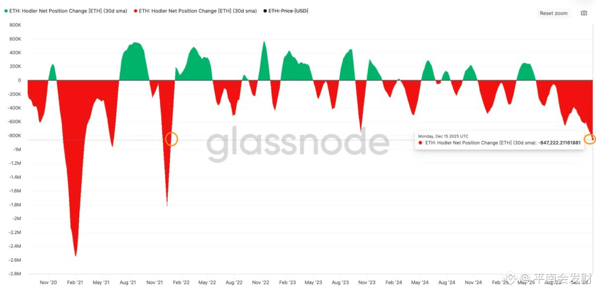 以太币期货的看跌趋势与长期持有者供应量下降同时发生,过去30天内减少了847,222枚币,这是自2021年1月以来的最大降幅。这进一步增加了卖方压力,导致ETH难以站稳3000美元关口。