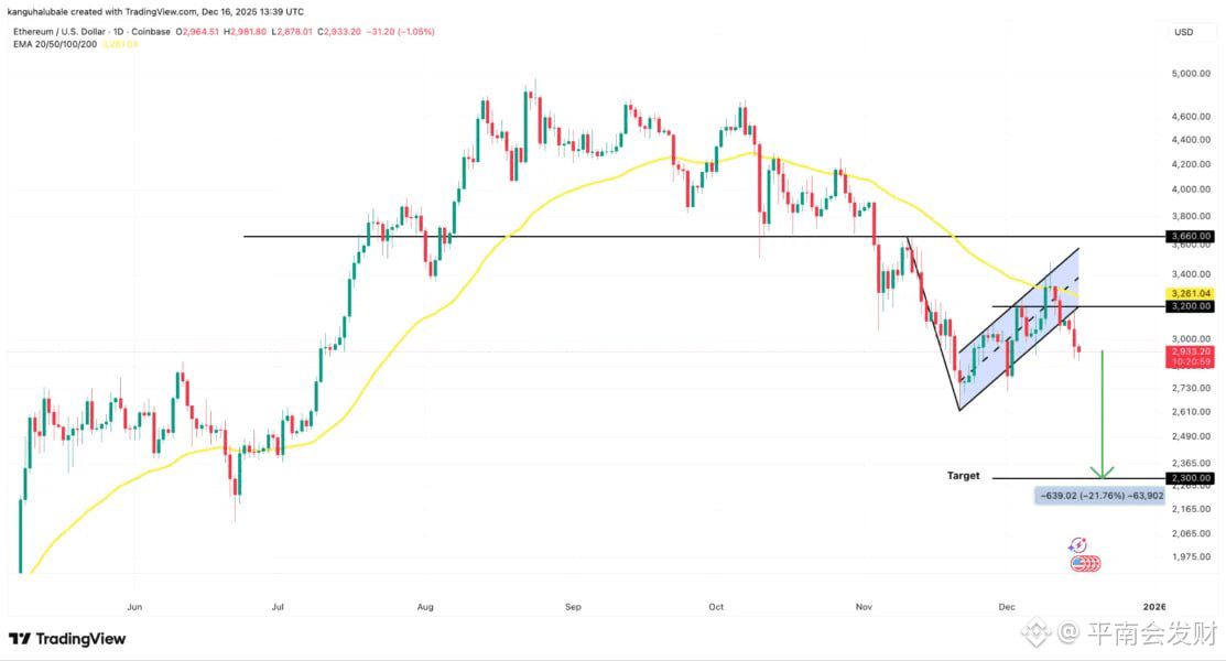分析师Danny Naz周日在X上发文指出:"以太坊在急剧下跌后进入盘整,在接近3173至3250区域的先前支撑位下方形成熊旗",他补充道:"该区域已转变为阻力位。"