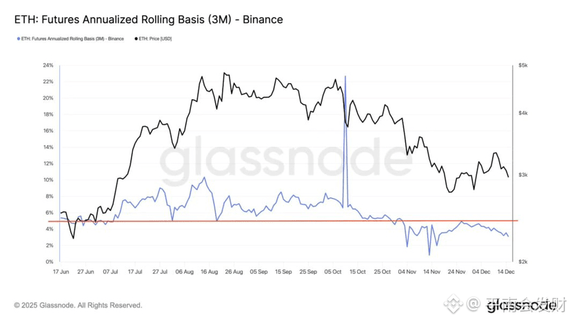 在看跌市场环境中,期货溢价通常维持在5%以下,这表明市场对杠杆多头头寸的需求疲弱,交易者整体乐观情绪减少。