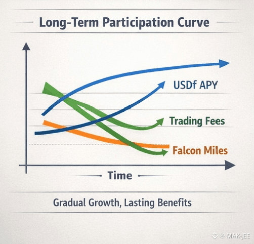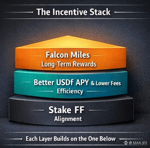 Each reward touches a different part of the user journey. Yield supports capital holders. Fee reductions help active traders. Falcon Miles reward commitment over time.