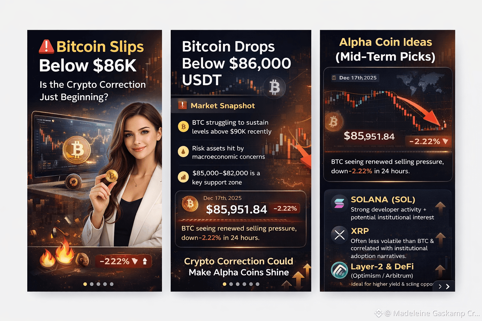 🚨 Bitcoin Slips Below $86K — Is the Crypto Correction Just Beginning?