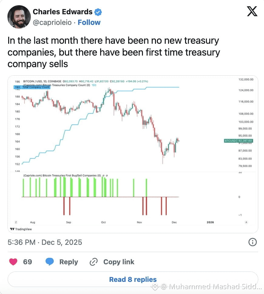Capriole founder Charles Edwards previously noted that the period between October’s highs and November’s lows represented intense stress across the corporate Bitcoin landscape. His latest analysis points to a “broken corporate flywheel,” citing record discounts to net asset value (NAV) among BTC-holding companies and rising leverage across the sector.