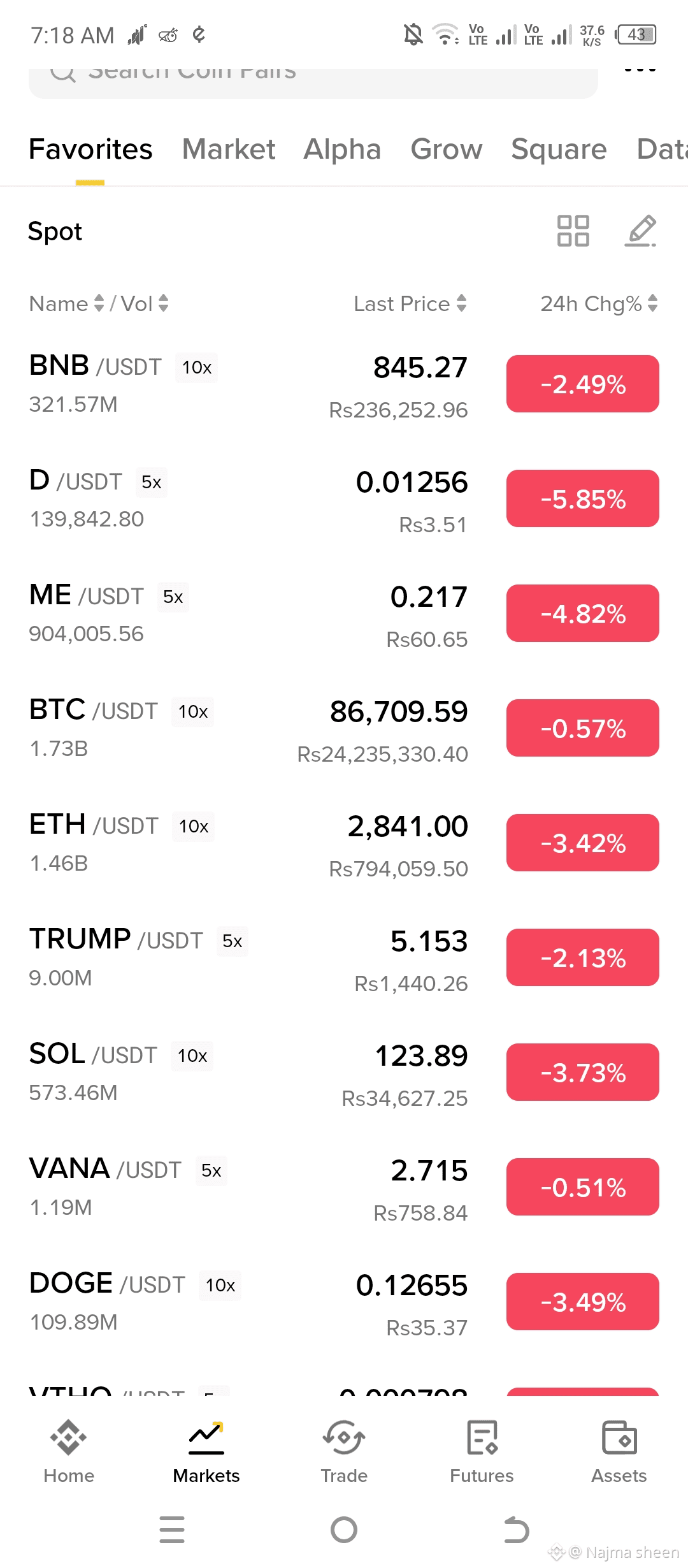 "Look at the market today! 📉 Most major coins, including BNB, $BTC . and ETH, are showing a significant downward trend.