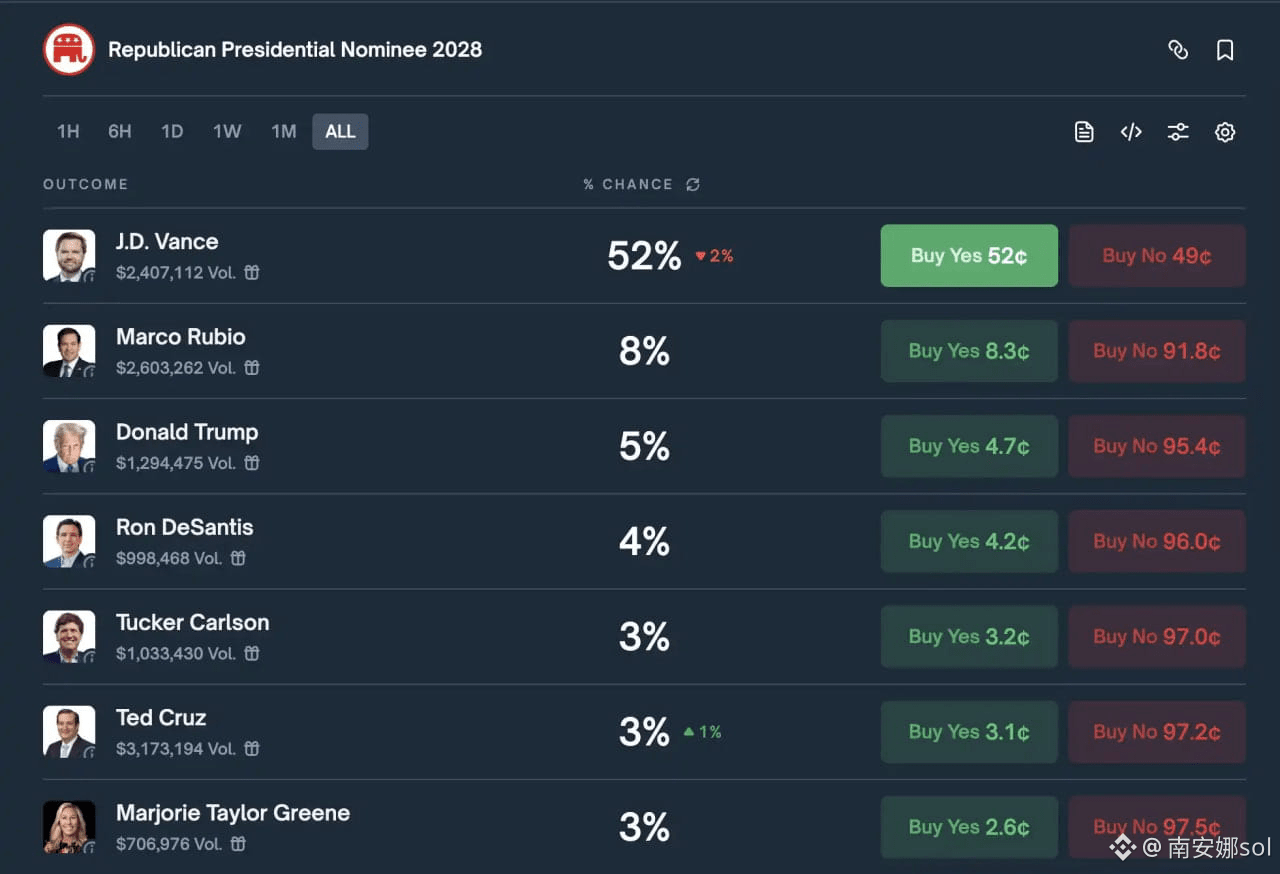 特朗普2028年概率只有5%,副总统万斯52%——但市场已经动了。