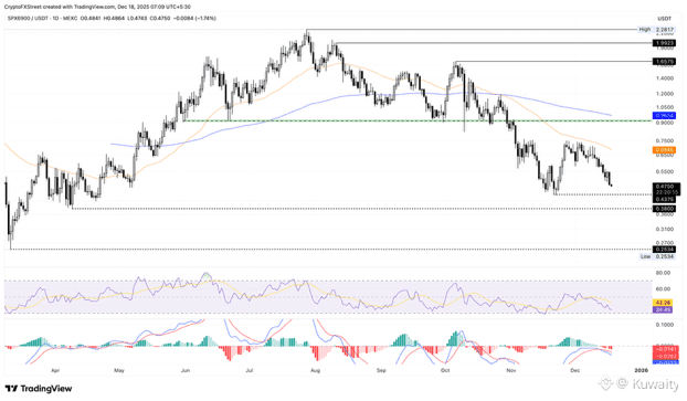 SPX6900 انخفضت تقريبًا بنسبة 2% في وقت كتابة التقرير يوم الخميس، مما يمدد انخفاض يوم الأربعاء بنسبة 12%. تشير أقل مسار مقاومة لعملة الميم إلى أدنى مستوى في 21 نوفمبر عند 0.4375 دولار، مما يشير إلى إمكانية هبوط تقارب 8%.