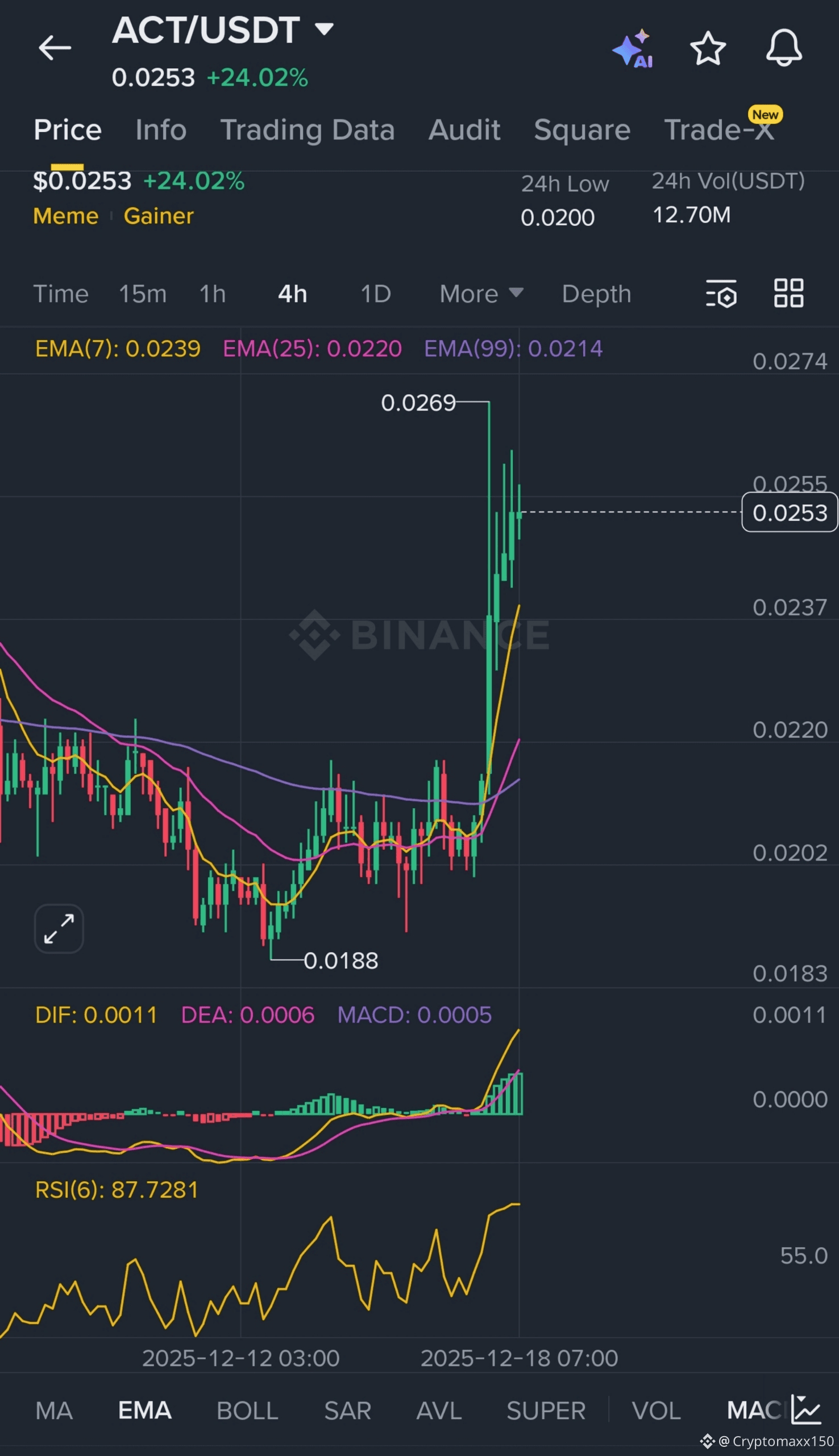 Beyond technicals, ACT is benefiting from positive community sentiment, which has amplified buying interest. Breakout narratives, increased visibility, and speculative momentum are fueling participation, keeping demand elevated.