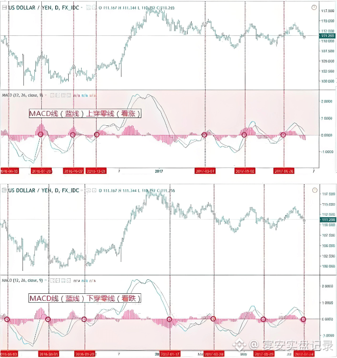 ''0 轴"之下,MACD线下穿信号线(死叉)做空
