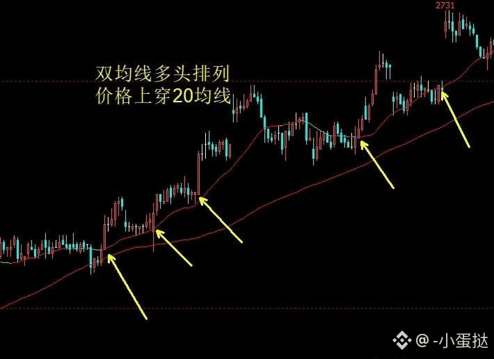 但是,也有这种时候:双均线多头排列,价格上穿20均线了,按交易规则,符合买入做多的交易信号。却一次次遇到假信号,能亏得你怀疑人生。