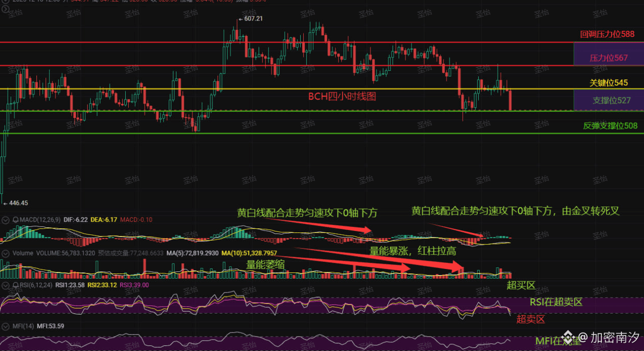 我是南汐,专注币圈行情拆解和实战策略。如果你也喜欢这样“说人话”的分析,点个关注,找到南汐,一起抱团取暖。每天我还会在村里里分享一个“MACD死叉却不跌”#山寨币热点 $BCH
