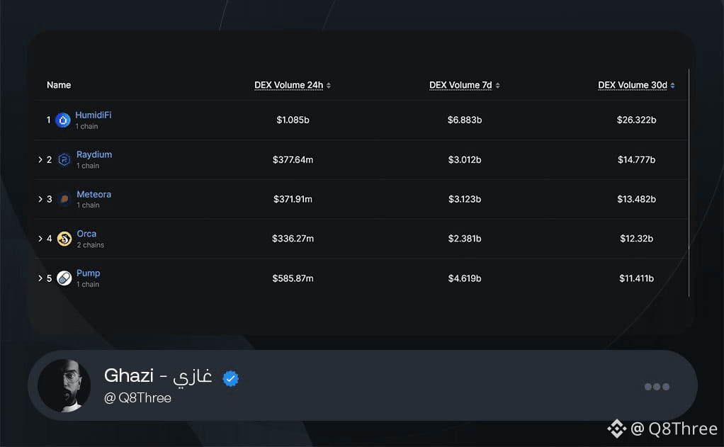 على سبيل المثال، منصة Raydium كانت في الصدارة لفترة بسبب تعاونها مع PumpFun.