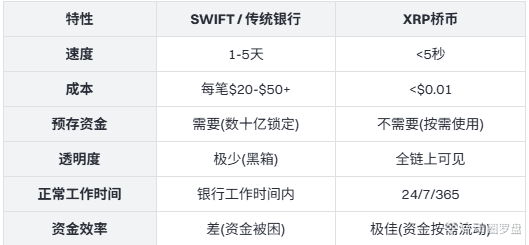 XRP桥币代表了全球支付方式的根本变革。它摒弃了几十年前的银行基础设施,让结算在公开区块链上通过密码学实现,全球可达,成本极低。