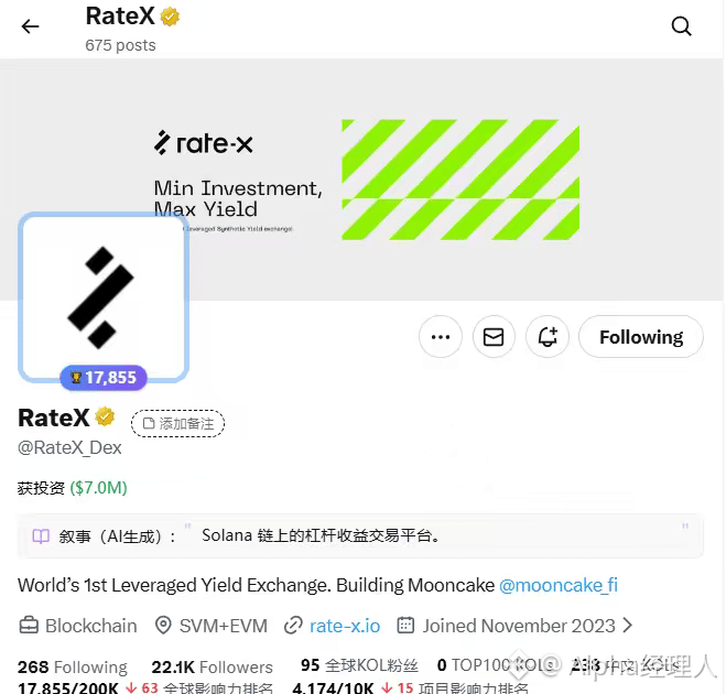 RateX 是一个构建于 Solana 生态的去中心化交易所(DEX)。