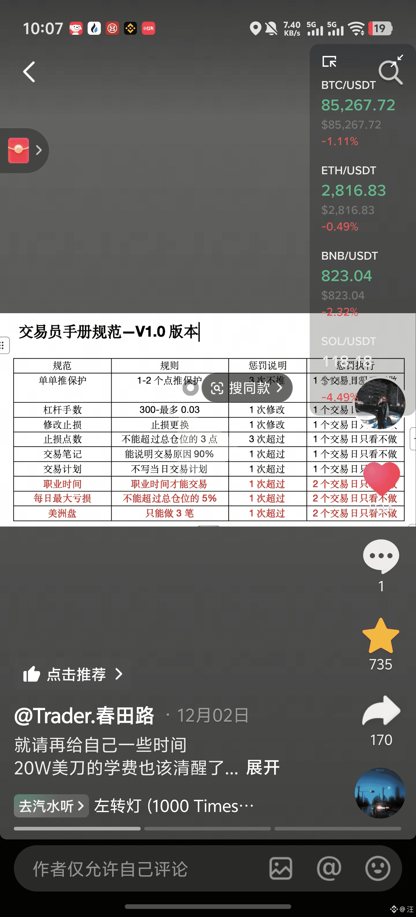 要复刻我上一轮操作的人,我希望你谨慎一点,不要这样做,不要给自己增加难度,借贷负债炒币一旦出错难以翻身,低倍长线合约是没有止损的,只有赢和归零两个选项,一倍也有归零的风险,各种buff叠起来会压垮你,我希望你用现有资金去做会非常轻松,钱少就少赚一点,也可以很好的生活,慢慢来。