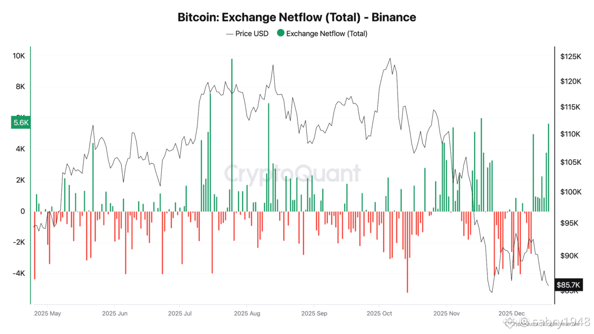 سجلت بورصة بينانس تدفقات صافية سلبية مستمرة طوال ديسمبر، مما يعني سحب كميات أكبر من البيتكوين مقارنة بالإيداعات. شهدت ارتفاعات في التدفقات السلبية تتراوح بين -2,000 و-4,000 بيتكوين أثناء الانخفاضات السعرية، مع تصاعد هذه التدفقات كلما انخفض السعر تحت مستويات رئيسية.