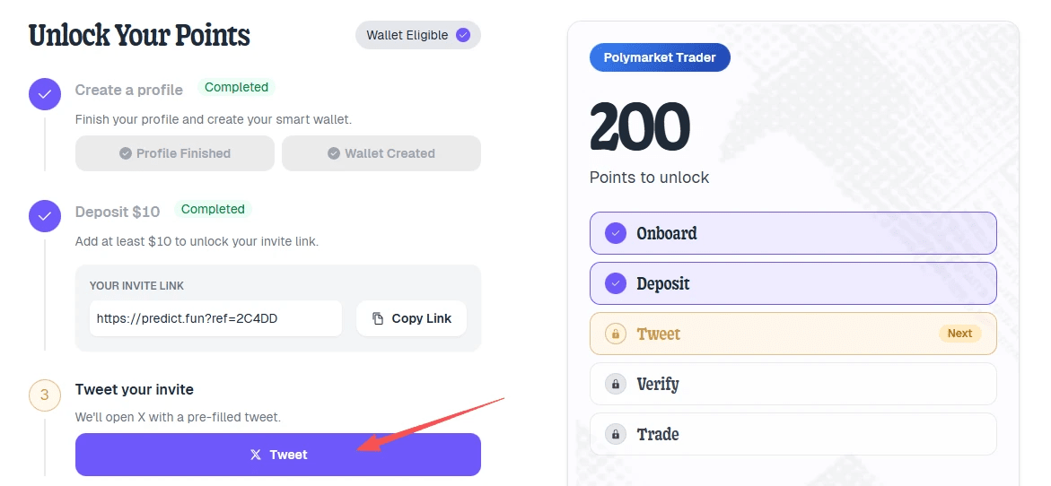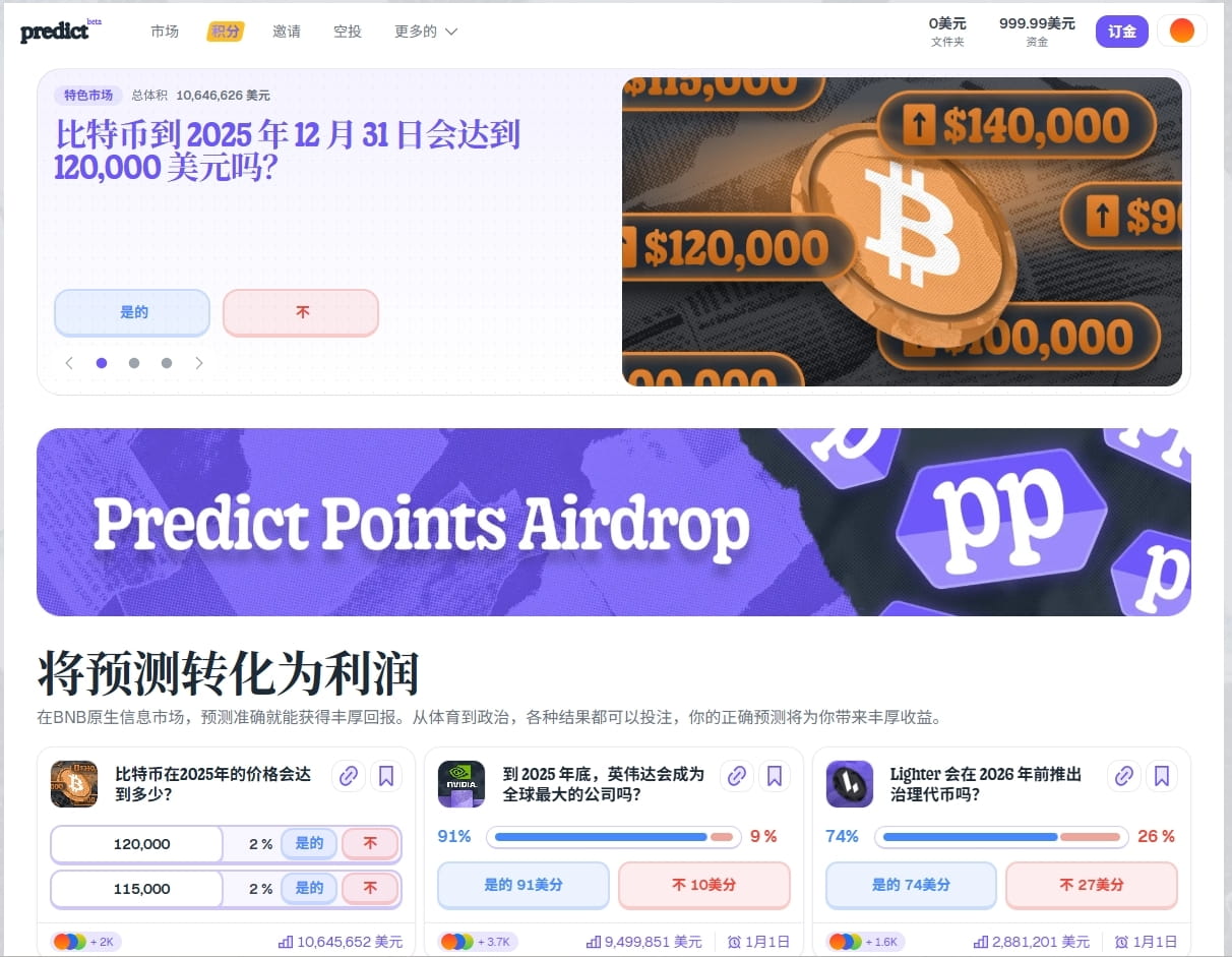 今天一看才发现:原来是CZ投资的预测市场项目predict.fun的测试网上线了,而且还给BNB Chain 上的 Meme 交易者、$ASTER 参与者、及各预测市场活跃的用户发了积分空投。