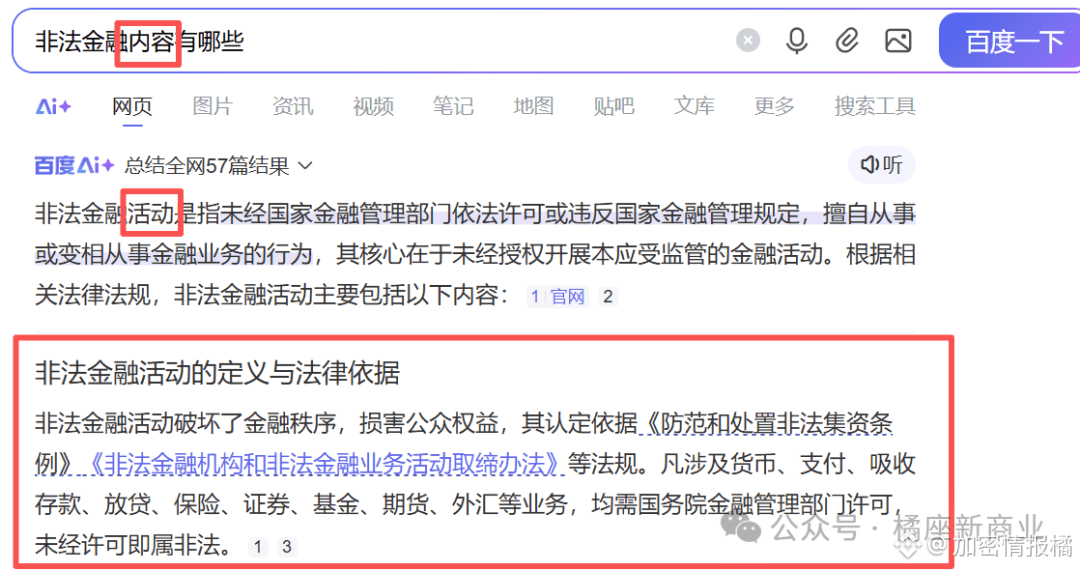 但橘座搜了半天,也没能精准定义什么叫非法金融内容,你去搜这个词,全网只有在抖音的规则中出现。