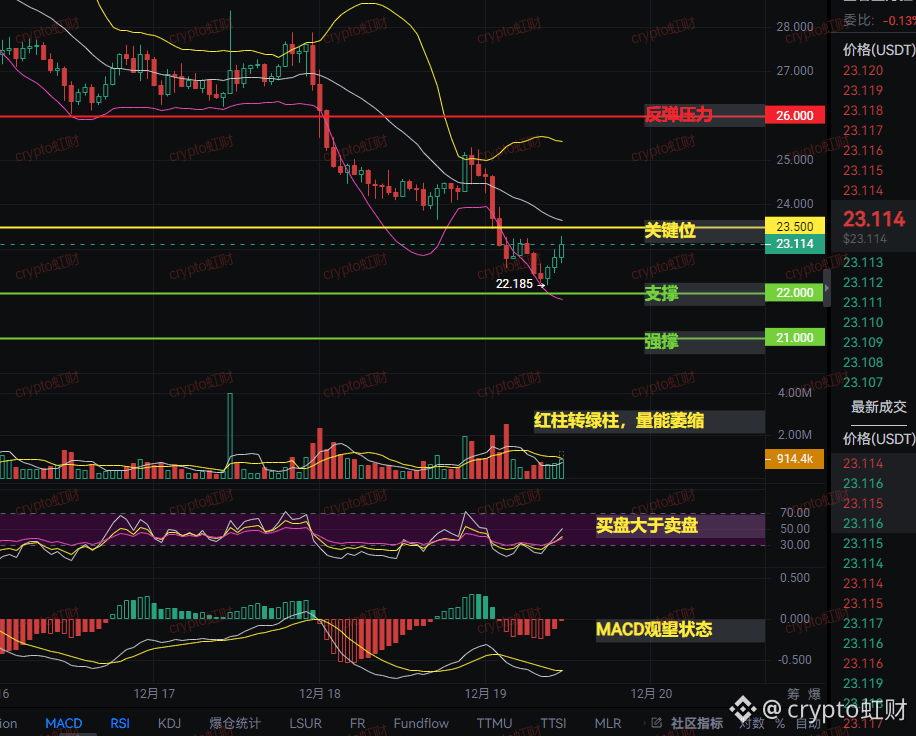 小白玩家:记住,巨鲸玩得起,你玩不起。现在行情波动大,你容易一进场就被套。建议观望,站稳23.5再考虑小仓介入,跌破22就先别抄底。