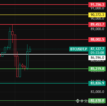 如果今天4小时级别跌破86600这个位置,那这波4小时级别反弹结束,往下下方支撑位留意85220-83830-82170这几个位置附近!#BTC走势分析