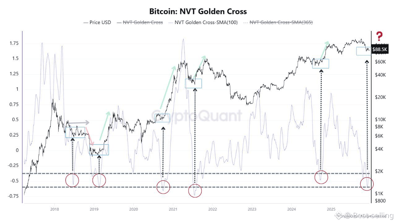 On-chain data shows Bitcoin’s NVT Golden Cross just hit levels historically seen during major valuation resets.